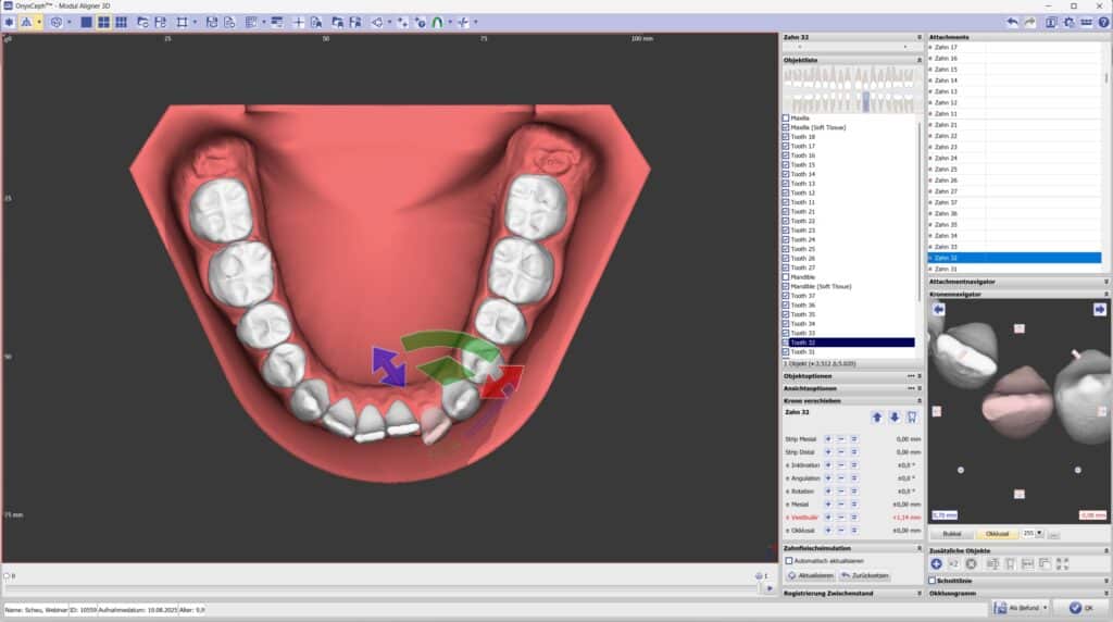 Dieses Webinar vermittelt die Grundlagen der Setup- und Schrittplanung im Modul Aligner von OnyxCeph³™ und baut auf der Basisschulung auf. Im Fokus stehen die Erstellung eines sauberen Setups sowie die strukturierte Planung einzelner Behandlungsschritte – als Grundlage für eine realistische und nachvollziehbare Alignertherapie.